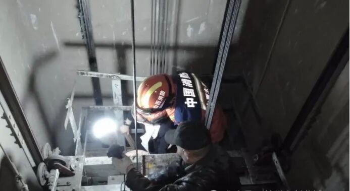 无独有偶,前不久山西太原也发生过一起电梯被困事件。当地一小区高层的分区电梯突发故障,一名女士被困其中。由于该电梯设计特殊且设备老旧,常规的救援方法都没能成功。消防人员经过多方面的分析研判,最终决定从轿厢顶部进行精准破拆,还贴心地为被困女士准备了安全头盔,借助木质单杠梯帮助她安全脱困。