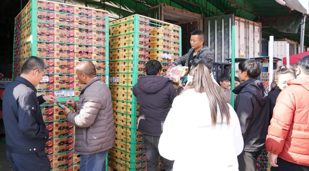 走进濛阳批发市场进口水果交易区,“智利车厘子”的招牌几乎占据每家档口显眼位置。交易区里人声鼎沸,货车停靠摊位前,商家忙着点数、打包、装车。批发商刘宁介绍,今年智利车厘子价格走低,1J和2J级每箱(10斤)150-200元,3J级约300元,比年前便宜上百元,较去年同期低15%-20%,货量不仅供成都本地,还发往四川周边及云南等地。