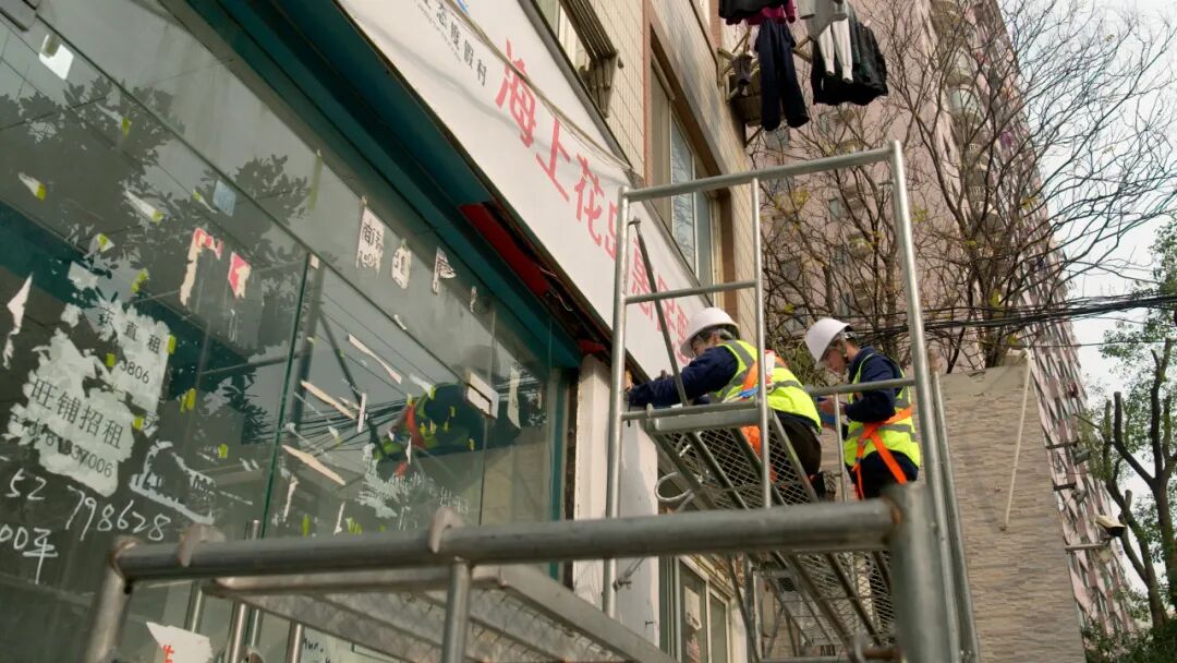 拆除隐患店招现场