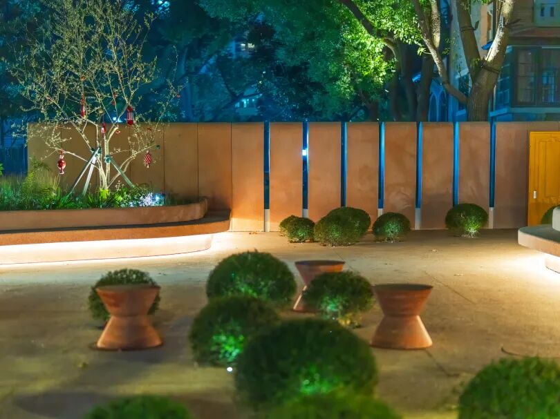 在1294号建筑与绿地开放区域之间的通行道上,原遮蔽顶棚被移除,天空视野完全展开,削弱了封闭感,让行人能一眼看到内部街巷的层次与绿意,提升了区域的开放性与吸引力。主通道一侧墙面选用与愚园路历史风貌协调的色彩、材质重新铺贴,保证了片区视觉上的连贯与和谐。