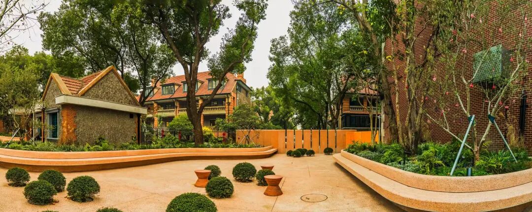 愚园路1294号建筑及周边地坪已全面翻新,充分考虑了建筑铺装与愚园路街区风貌的协调性,确保与周边历史建筑群和谐统一,维系了街区连续完整的历史场景与空间肌理。
