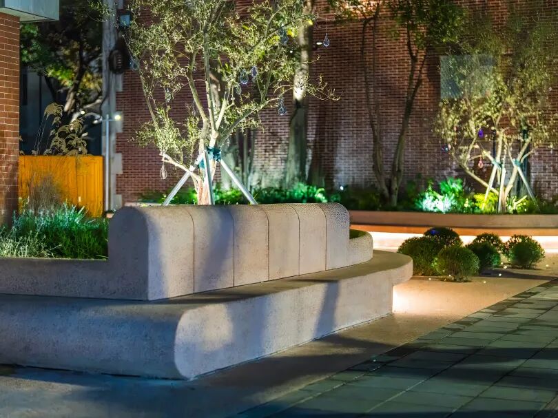 项目拆除了实体围栏,采用绿篱、低矮花坛等生态柔性方式界定空间,实现视觉与步行的双重贯通,将绿地与城市街道网络无缝衔接。同时增设景观座椅,为周边居民和访客提供午休放松、社交会友的舒适场所。