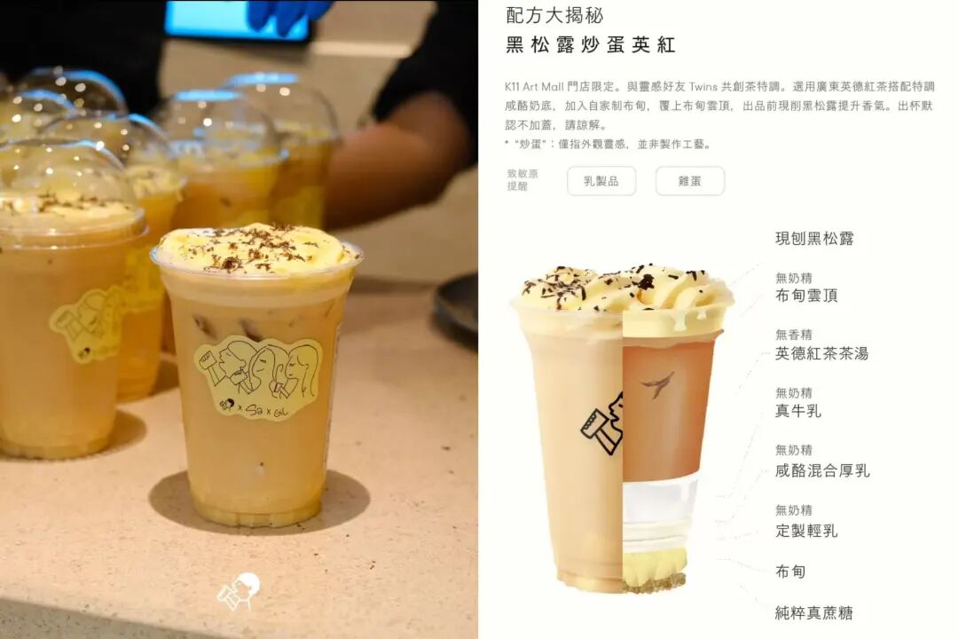 这是1月13日,喜茶香港K11店焕新升级之际,以茶餐厅经典风味“黑松露炒蛋”为灵感,限定上新的一款茶特调。