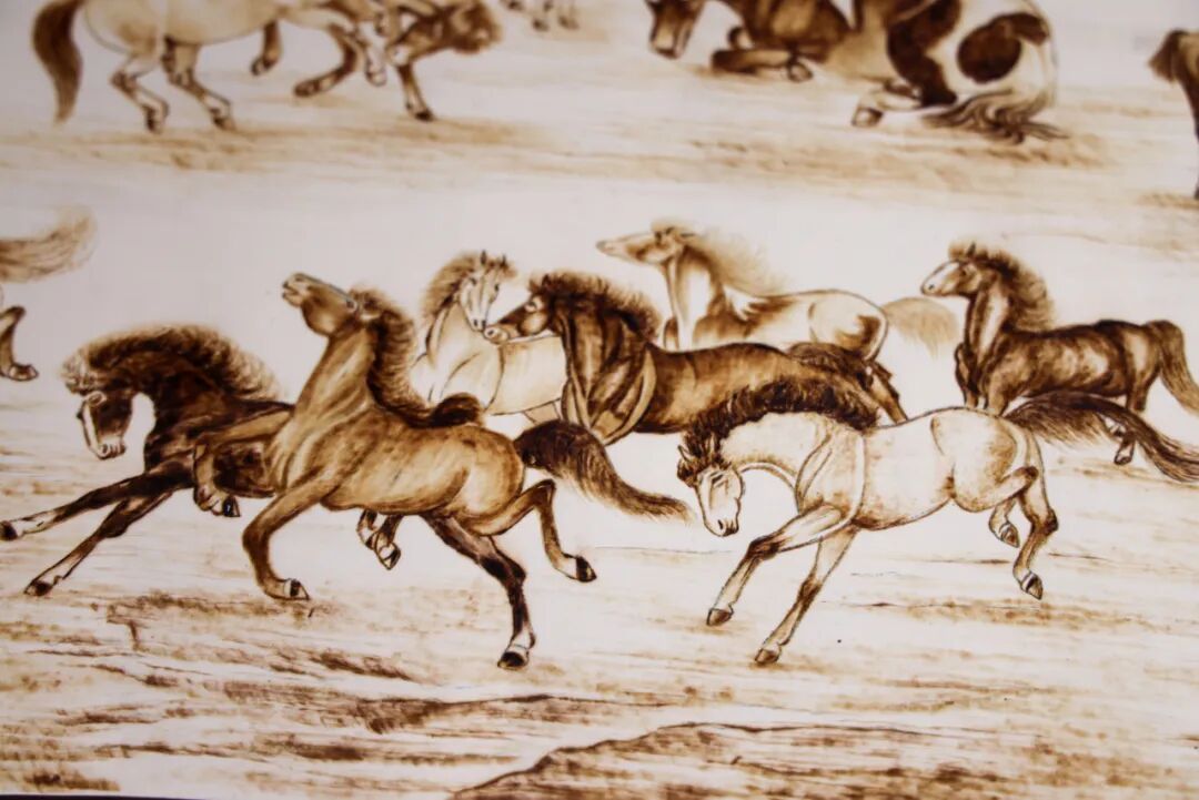 烙铁为笔“烫”骏马 每幅都灵动逼真