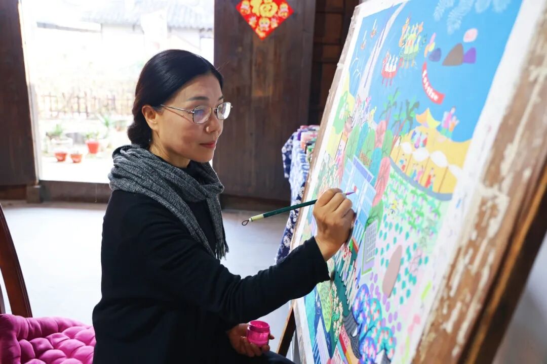 枫泾古镇的中国农民画村最近也迎来了一批特色新作——金山农民画的两位画师陈卫雄和陈惠方创作的马年主题作品正式展出,他们用浓墨重彩的乡土笔触,描绘出江南新春的热闹景象。