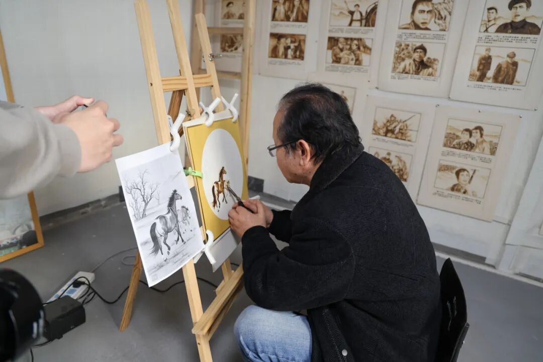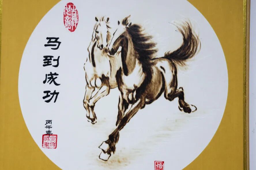 焦永兴告诉记者,烙铁画的创作过程非常考验耐心和技巧。为了呈现出最好的效果,他早在2025年4月就开始筹备,不仅查阅了大量资料,还精心烙制了骏马长卷和80多幅马年主题挂历。