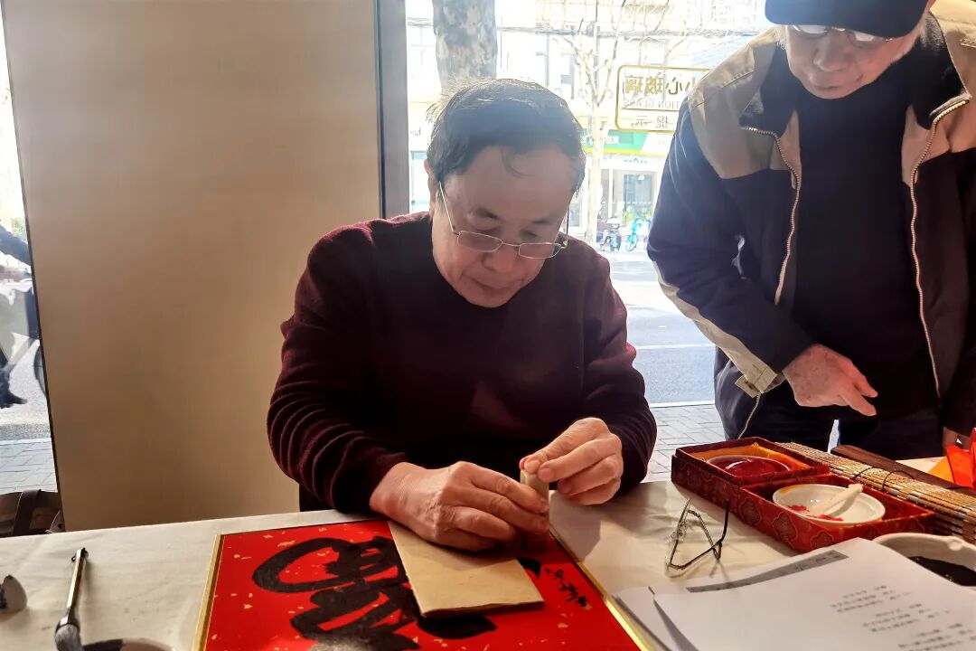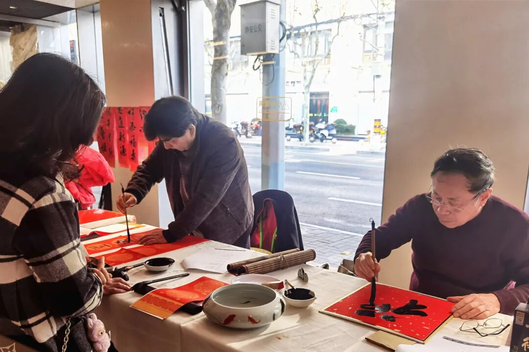 1月16日,静安区文学艺术界联合会携手静安书法协会,在同乐坊开展了一场“翰墨飘香送祝福”活动,为园区内的白领们送去由书法名家亲笔书写的春联与“福”字。活动现场,浸润着传统文化韵味的翰墨丹青,与充满热情活力的园区氛围相互交融,勾勒出一派热热闹闹的新春景象。