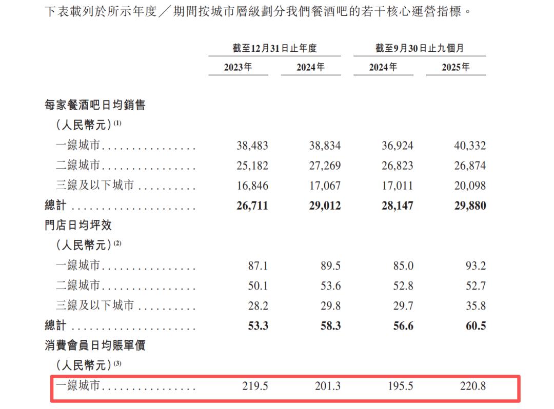 值得注意的是,在营收增长背后,公司核心运营指标如同店销售增长率已出现下滑。分城市线级看,一线城市是拖累同店销售的主要因素,2024年一线城市同店销售增长率为-1.1%,2025年前三季度降幅扩大至-1.4%,连续两个报告期负增长;二线城市同店销售增长率也由正转负,2025年前三季度为-0.2%;仅三线及以下城市保持4.4%的正增长。