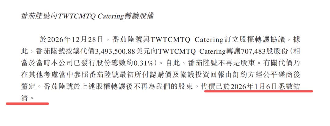 与突击分红同步的是早期投资方番茄资本的精准退出。招股书显示,番茄资本曾参与幻师2022年A+轮融资,为早期投资方之一。2025年12月底,即在公司宣派特别股息的同一时期,番茄资本以349万美元(折合人民币约2439万元)转让持有的0.31%股份。
