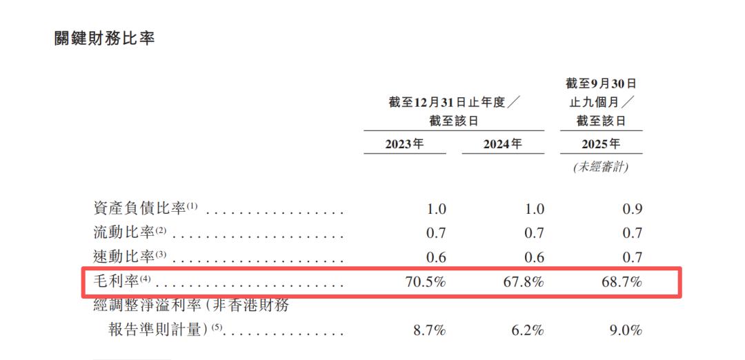 招股书显示,幻师整体营收保持增长,但增长动力主要依赖门店扩张,核心运营指标已显露疲态,尤其是一线城市同店销售持续负增长,成为制约发展的关键瓶颈。2023年、2024年及2025年前三季度,幻师分别实现营业收入8.45亿元、10.74亿元及8.72亿元,经调整净利润分别为7344.9万元、6618.6万元及7863.3万元。毛利率方面,公司整体毛利率始终维持在65%以上高位,2023年达70.5%,2024年回落至67.8%,2025年前三季度回升至68.7%,虽未恢复至2023年峰值,但仍高于餐饮行业平均水平。