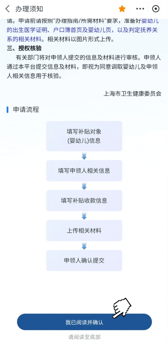 1.首次申领的家长,点击“育儿补贴专区”下方的“立即申领”,选择“我要申请补贴”,仔细阅读办理须知和申请流程后,开始在线办理。