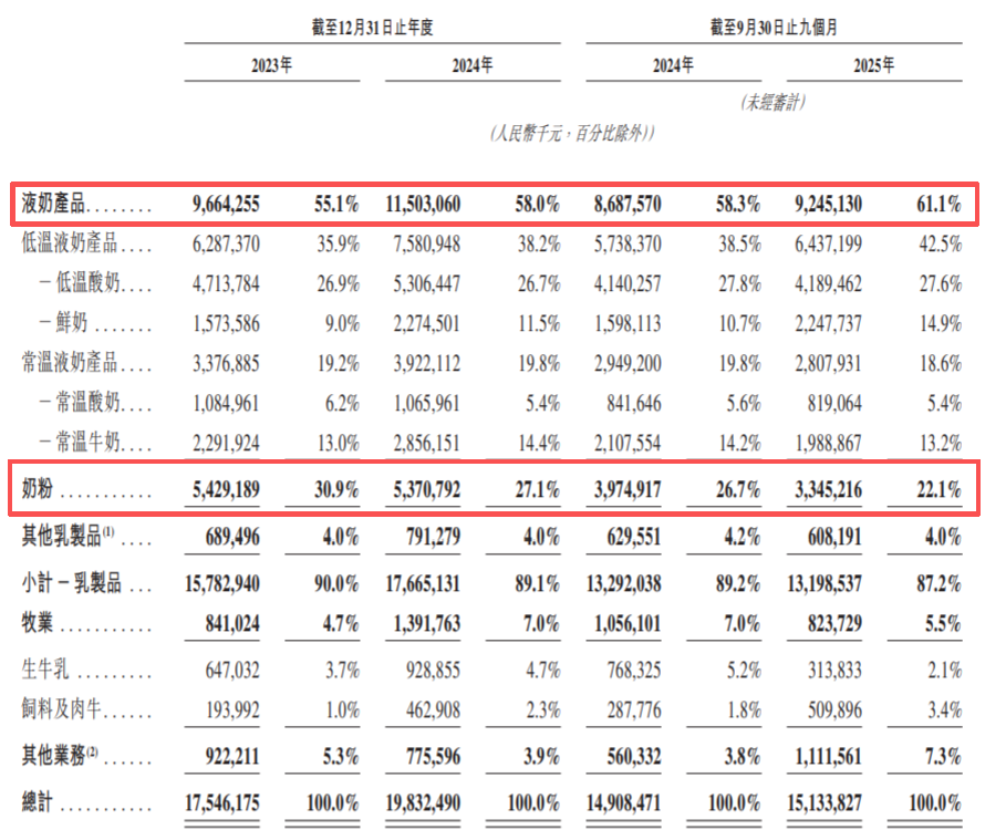 当前君乐宝的营收结构已发生变化,液态奶占比超六成(其中低温液态奶占42.5%),奶粉业务占比降至22.1%且持续收缩。这一调整与国产奶粉市场竞争激烈、消费群体缩小有关,转向受众更广的液态奶市场成为必然选择。