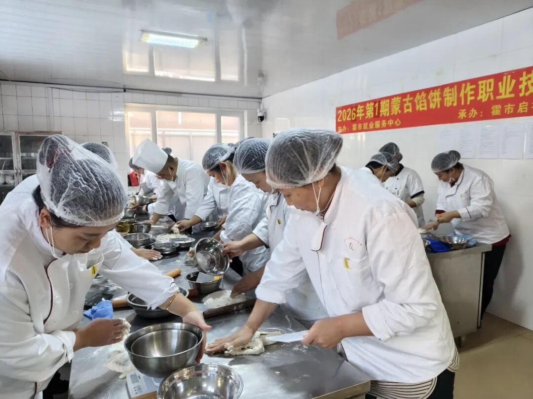 “面皮要擀得薄且均匀,包馅时得把口收严实,这样煎出来的馅饼才能皮薄馅足、香酥入味……”近日,2026年第一期蒙古馅饼制作职业技能培训现场,面香与油香交织飘散,学员们围在操作台边,目光紧紧跟着授课老师的动作,手里的面团随着讲解不停变换形态,学习氛围十分热烈。