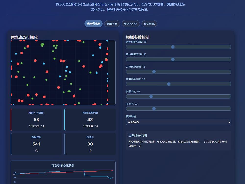 我们尝试让Qwen3-Max-Thinking做了一个力量与速度种群模拟器,这是我们之前测试Qwen3-Max-Preview时的同款考题。
