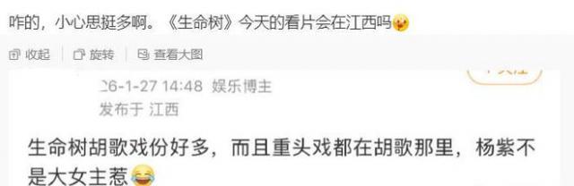 看片会消息称,胡歌戏份占比高且多为重头戏,这让不少人疑惑:“这不是大女主剧吗?”对此,杨紫在采访中明确表示,《生命树》是一部“群像剧”,每个角色都有独立故事线,内核是“钢铁般的意志”——这与《小城大事》的定位不谋而合。