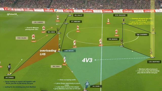 卡里克的第三种应对方案是派中锋谢什科出场,或让库尼亚担任伪9号,同时安排阿马德·迪亚洛与姆贝莫中的一人改踢左路。这两人与多古同为左脚将,能提供边路外侧进攻选择,而非一味内切。