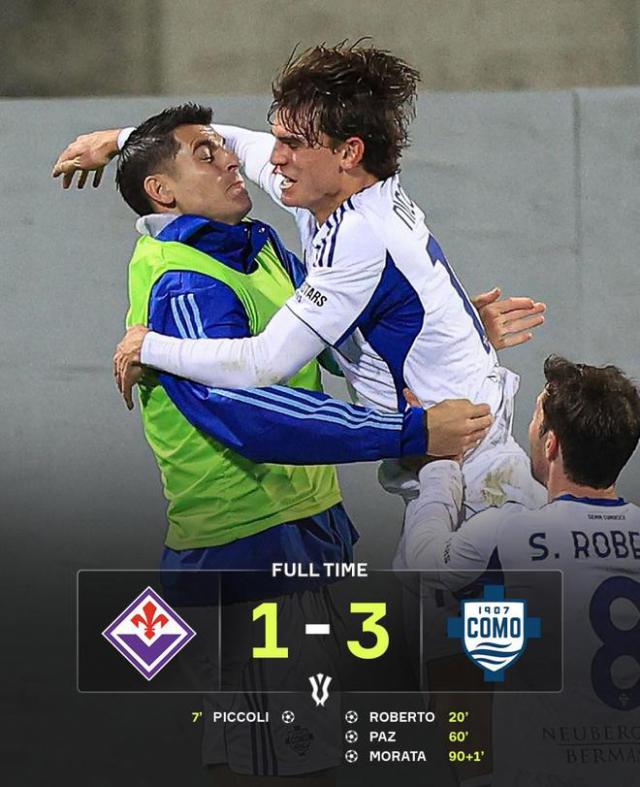 此后,佛罗伦萨试图通过换人加强进攻,但阵型前压导致后防空当暴露。第90+1分钟,科莫打出快速反击,尼古拉斯-库恩送出精准直塞,33岁的皇马旧将莫拉塔冷静前插,在十二码附近推射破门,将比分锁定为3-1。最终,科莫客场3-1逆转佛罗伦萨,成功晋级意大利杯八强。从被动落后到完成逆转,再到锁定胜局,法布雷加斯的执教能力愈发成熟,看来又有豪门要向他抛出橄榄枝了!