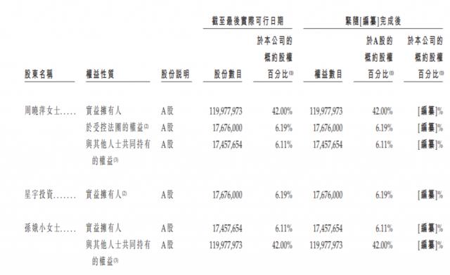 截至招股书最后实际可行日期,周晓萍持有星宇股份42%的股权,为公司主要股东。