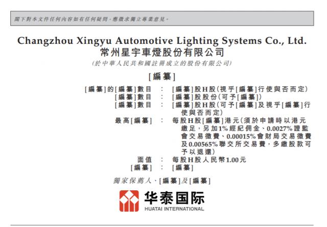瑞财经 王敏 1月26日,港交所披露文件显示,常州星宇车灯股份有限公司(简称“星宇股份”)正式向港交所提交招股说明书,此次IPO的独家保荐机构为华泰国际。