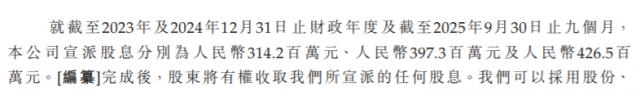 分红情况显示,在2023年、2024年两个完整财年及2025年前九个月,星宇股份宣派的股息金额分别为3.142亿元、3.973亿元和4.265亿元,累计分红达11.38亿元。