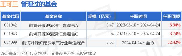 前海开源沪港深龙头精选混合A基金经理调整:新增王可三担任基金经理