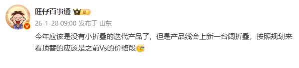 【CNMO 科技消息】1月28日,数码博主“旺仔百事通”透露,国内某手机厂商今年将暂停小折叠手机的迭代更新,转而在产品线中新增“阔折叠”类型产品。按照规划,这款新产品大概率会填补此前Vs系列占据的价格区间。结合多方信息推测,这家厂商正是荣耀。
