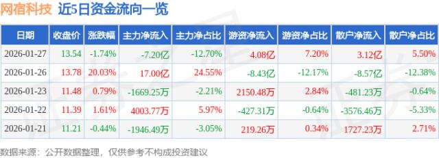 1月27日资金流向数据显示,主力资金净流出7.2亿元,占总成交额的12.7%;游资资金净流入4.08亿元,占总成交额的7.2%;散户资金净流入3.12亿元,占总成交额的5.5%。