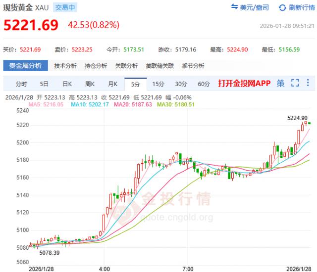 历史性突破!现货黄金首破5200美元关口