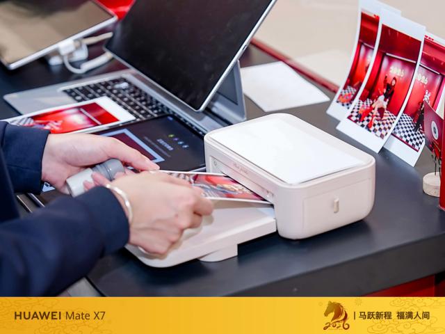 更重要的是,拍完照片后获取照片的方式也很方便。因为鸿蒙生态有全场景互联的能力,用户拍完照后,可以把照片一键传到宣发区生成成片,还能用“碰一碰”“华为分享”快速传到打印机,轻松拿到实体的新年大片。