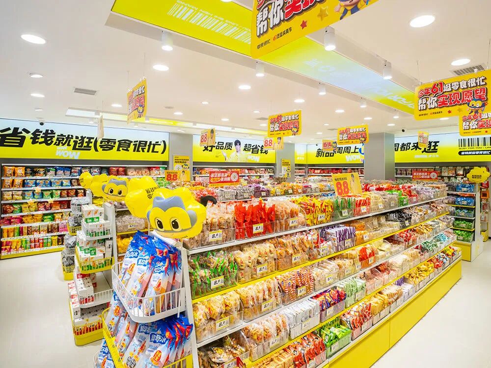 量贩零食赛道增长空间有限,鸣鸣很忙与万辰集团均将目光投向全品类折扣超市,试图复制低价模式。2025年2月,鸣鸣很忙推出3.0店型,新增百货日化、文具潮玩、烘焙、生鲜等品类,并开设“赵一鸣省钱超市”;万辰集团也于2024年12月推出多款超市门店,拓展品类范围。