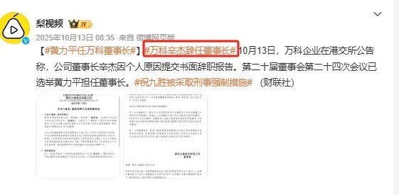 一波未平一波又起。接过郁亮董事长职位的辛杰,这位被视为深圳国资派驻的“救火队长”,也在2025年9月被传参会期间被带走,失联24天后递交了辞呈。