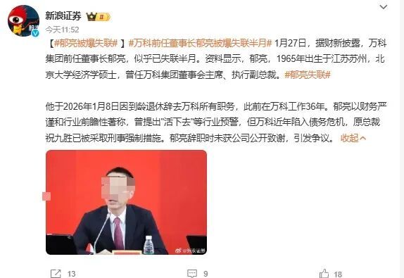一则“郁亮疑似失联”的消息,将本就处于舆论漩涡中的万科再次推向风口浪尖。