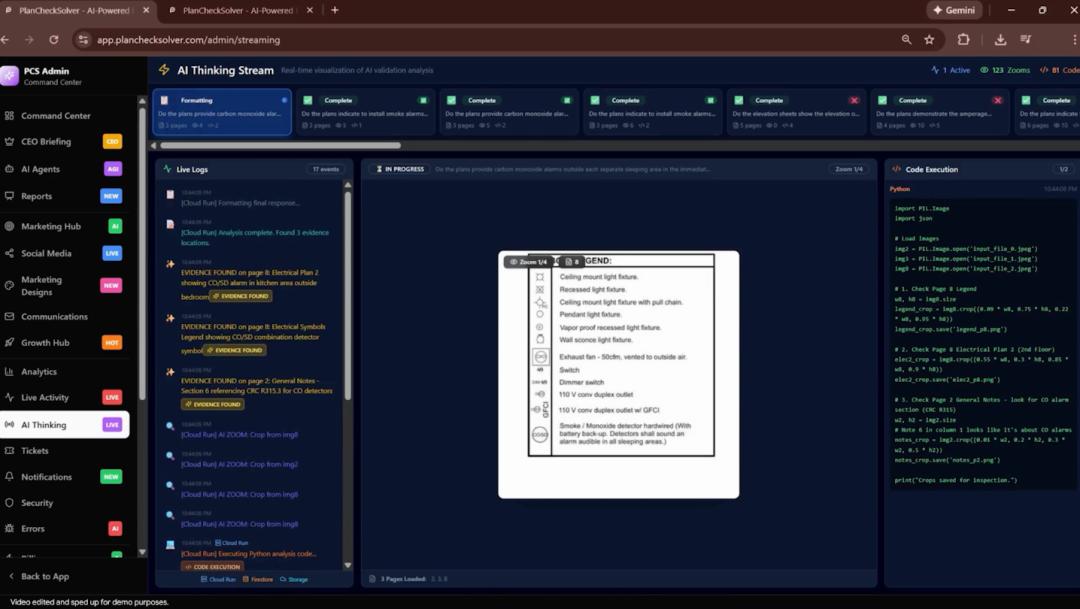 Gemini 3 Flash能在检测到细粒度细节时自动缩放。建筑计划验证平台PlanCheckSolver.com启用该功能后,通过迭代检查高分辨率输入,准确率提升5%。后台日志显示,模型生成Python代码裁剪分析屋顶边缘等特定区域,将结果追加到上下文以确认是否符合建筑规范。