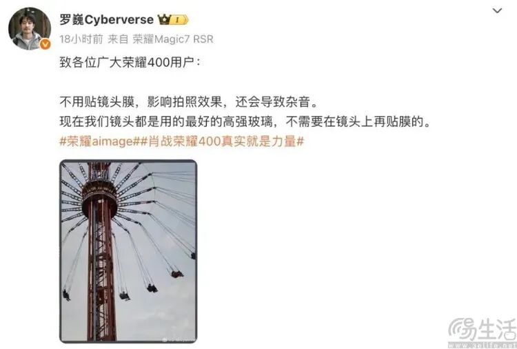 更早之前,荣耀首席影像工程师罗巍也曾发文建议用户“无需贴镜头膜”。他解释道,如今手机镜头采用的是高强度玻璃,本身具备足够的防护能力,无需额外依赖镜头膜;且镜头膜会影响拍照效果,还可能导致扬声器出现杂音。