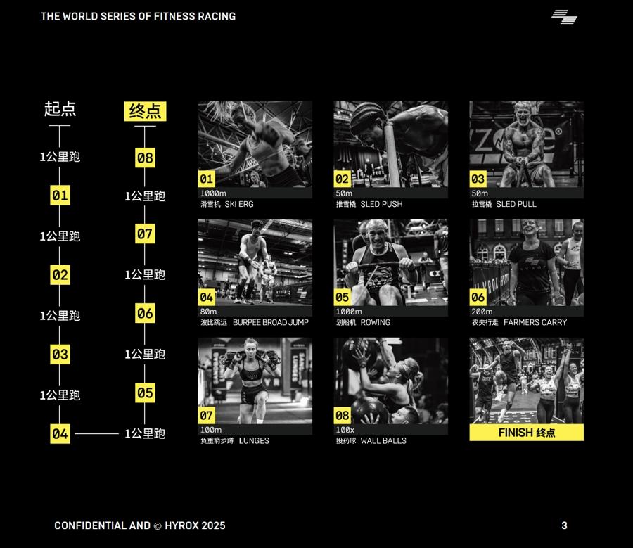 HYROX提供的并非新训练方法,而是一套可被资本、品牌和健身机构共用的赛事IP模型:标准化赛制、统一动作、可复制城市站点及稳定的参赛人群画像。