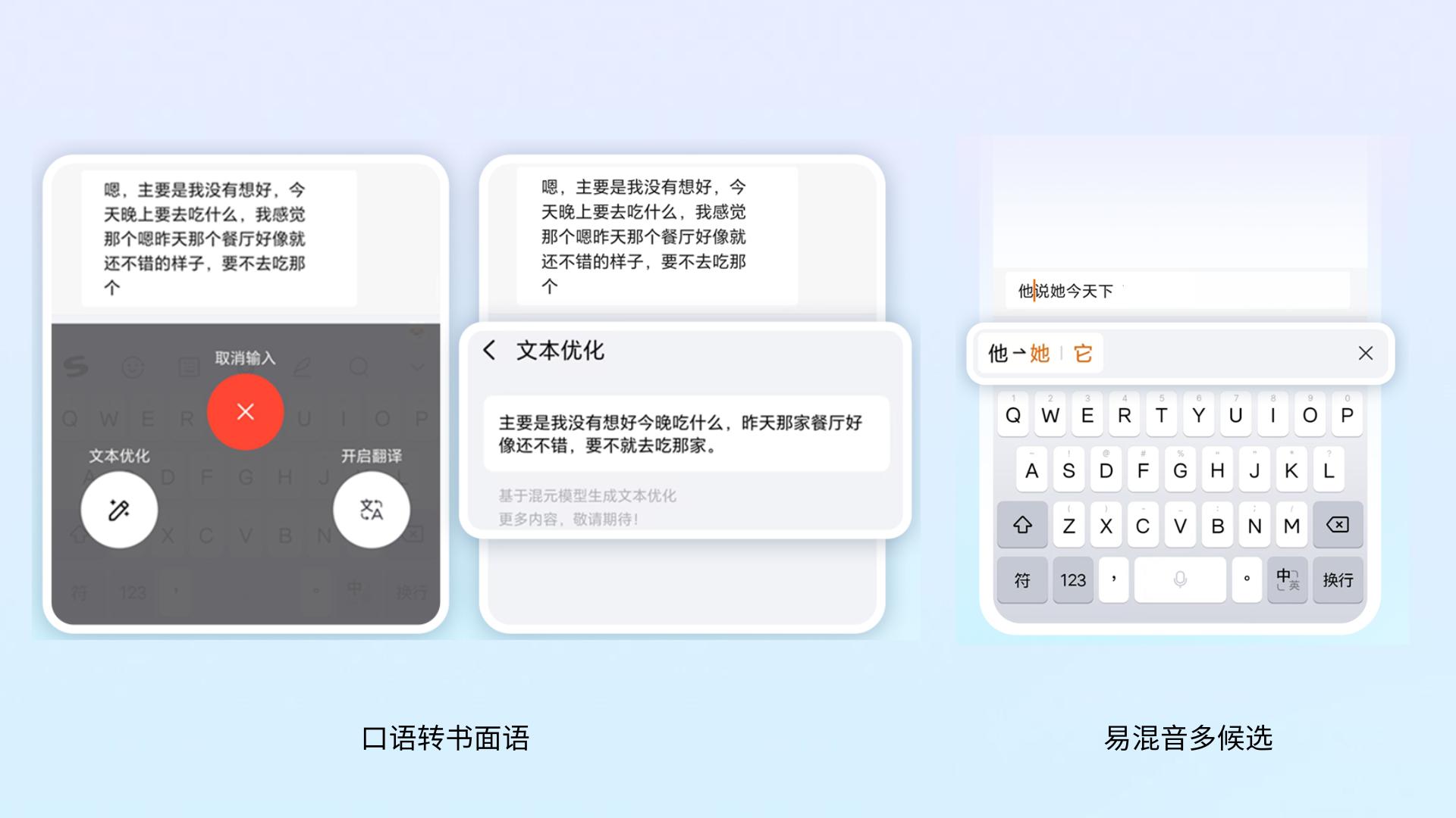 AI语音是此次升级的重点。依托自研AI语音大模型,新版本在语音识别流畅度、整体准确率及方言识别精度上均有提升。同时,新增“口语转书面语”和易混音修改功能,针对语音输入中常见的“他她它”“的地得”等易混音问题,提供候选及替换方案。