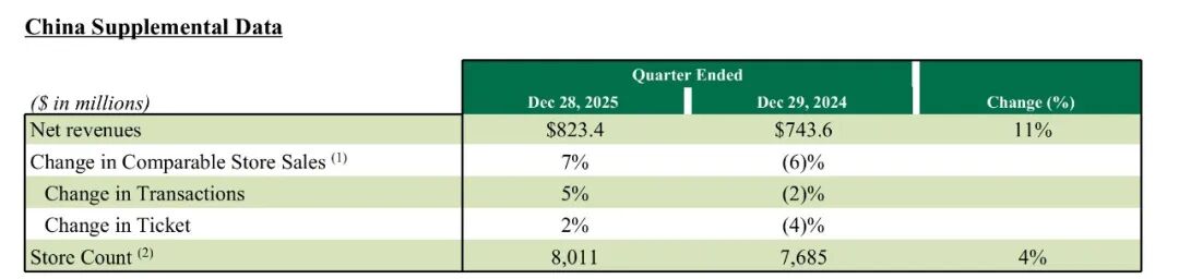 星巴克的国际市场同店销售额增长了5%。中国作为星巴克的第二大市场,同店销售额增长了7%;该季度收入为8.234亿美元,同比增长11%。2025年11月,星巴克宣布计划与博裕资本成立合资企业,在中国开展业务。