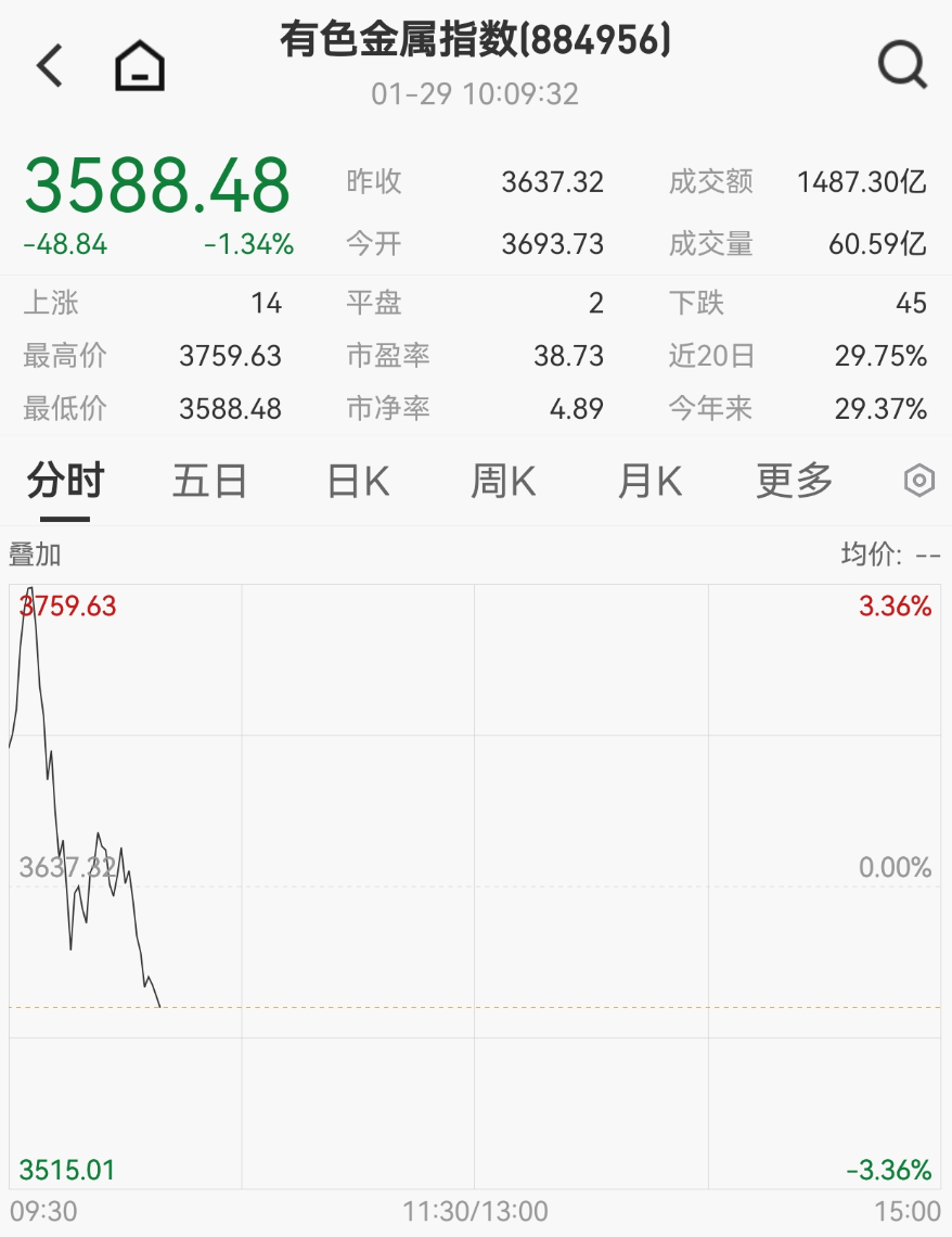有色金属板块高开低走