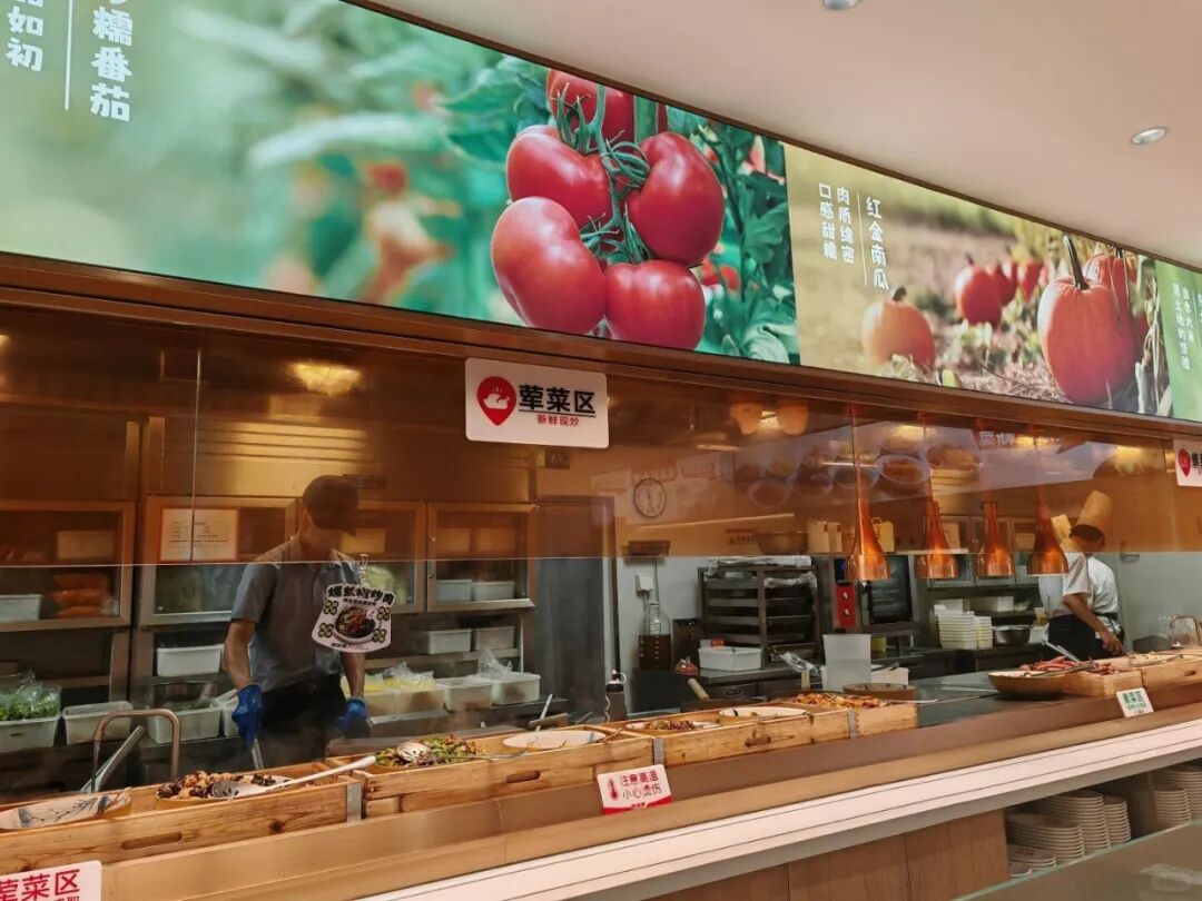 产品上,明厨亮灶、鲜切现炒迎合消费需求——美团数据显示,2025年1-5月“鲜活”搜索增速达135.3%,“现炒”增速71%。服务上,3.0门店采用L形选菜动线,标注“省钱小贴士”,提供热毛巾擦手,用细节弥补自助模式的体验缺口。