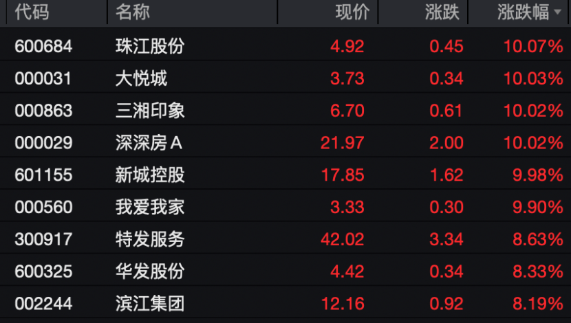 行业板块方面,传媒板块领涨两市,涨幅超4%;房地产板块紧随其后,盘中涨幅一度突破3%,珠江股份、大悦城等多股涨停;有色金属板块则经历了“大涨-转跌-回升”的剧烈波动,午盘涨幅达2.7%,湖南黄金、西部黄金等个股涨停。