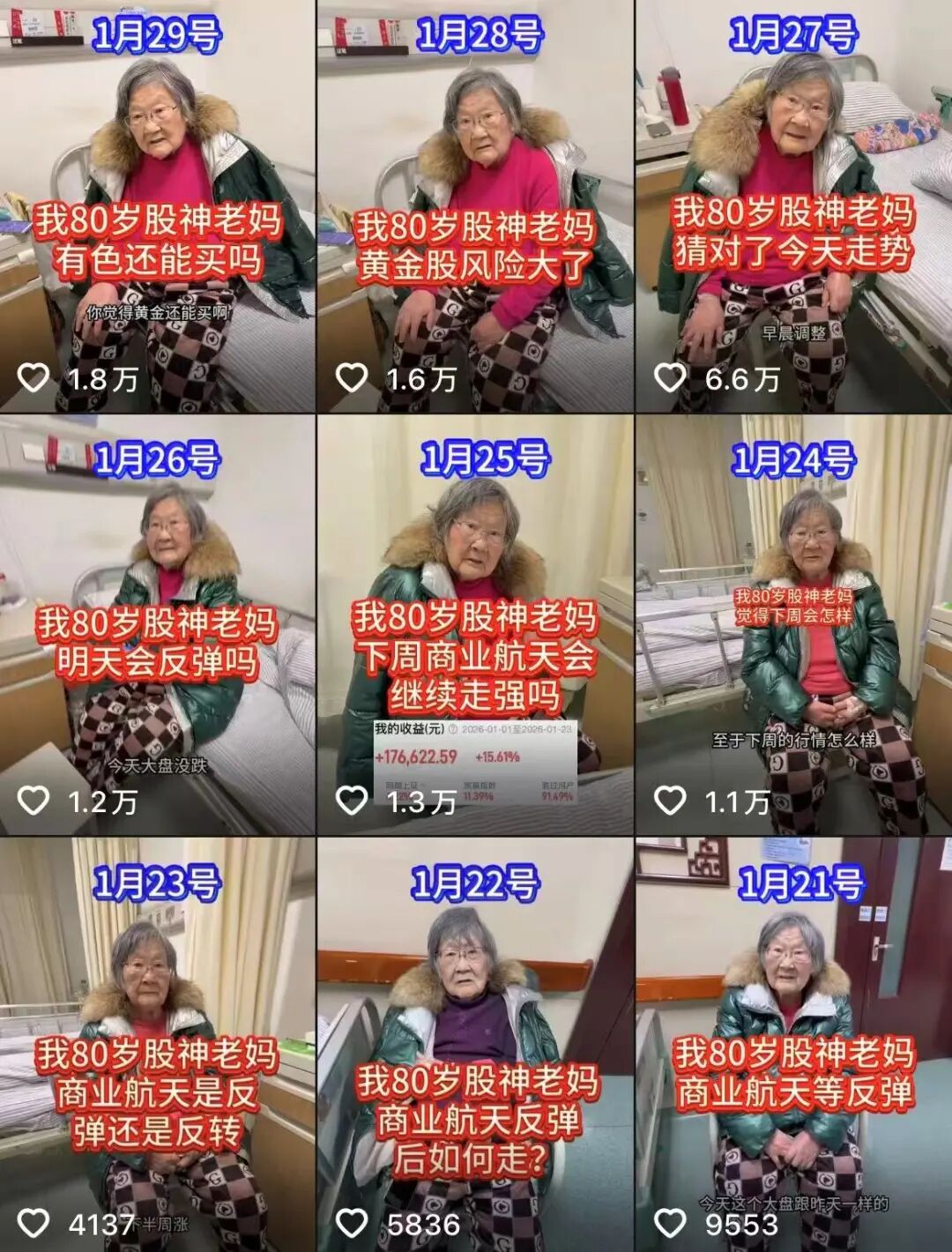 @杰哥 的内容里,80岁“股神老妈”每天分析大盘走势、板块情况等,引用户打卡学习作理财参考,@杰哥 抖音粉丝167.5万,小红书粉丝破15万。
