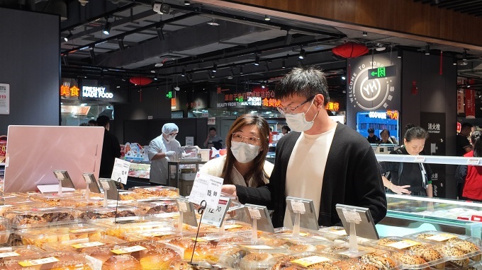 作为潮流地标,正佳广场客群偏爱颜值经济,烘焙区主打高颜值与好味道,草莓奶油盒子蛋糕、车厘子盒子蛋糕、山楂糖葫芦面包、PLUS法式奶香片、动物黄油大羊角可颂等产品,将视觉享受与美味体验融合,成为年轻人购物车里的常客。