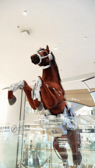 以八佰伴中心为例,除“翼马”外,商场还打造了充满科技感的“赛博朋克风”动态马,吸引年轻消费者打卡分享至社交媒体。八佰伴用一动一静两种方式解读“马”的蓬勃生命力,让“传统美学”与“赛博科技”在商场内碰撞、对话。