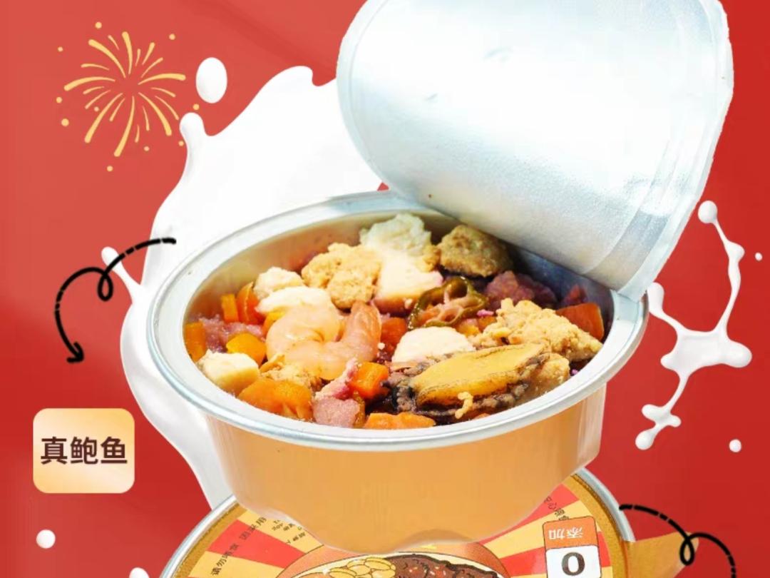 宠物“美食”也是巨大市场。天猫搜索“宠物年夜饭”,不仅有猫狗的饺子、汤圆、冻干糖果礼盒,兔类、仓鼠等小宠的需求也被照顾到。2024年起,小宠品牌“提野星”推出的“小宠年夜饭”成了仓鼠玩家爆款,采用“小金碗”外形,加入虾仁、鲍鱼等食材,配合蔬果谷物蒸煮灭菌封罐,仅在年节售卖,上架不到半个月售出约5000件。