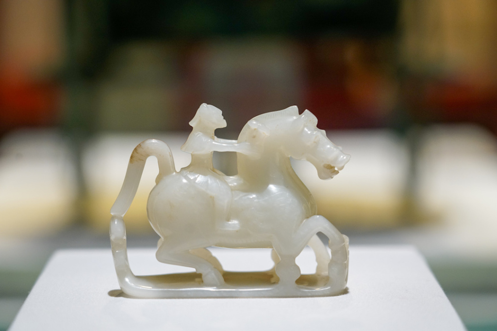 展览现场 圆雕白玉仙人奔马 咸阳博物院藏
