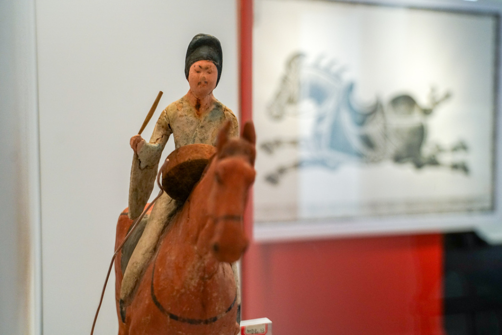 展览现场 唐骑马击鼓俑 甘肃省文物考古研究所藏