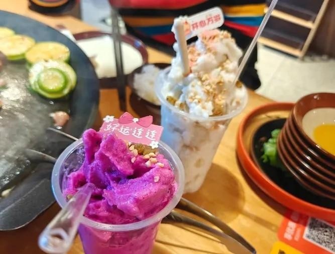 一些店主还引入贵州冰浆、甜酒粑等高颜值甜品,烙锅配甜品,随手拍就能凑九宫格,让贵州烙锅成为年轻人打卡的“漂亮饭”。