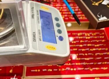 水贝商家给金首饰称重 每经记者 潘婷 摄