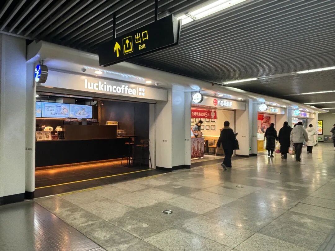 北京国贸地铁站的瑞幸快取店紧邻主通道,采用“无座、快取”模式,乘客到站即可取餐,效率极高。