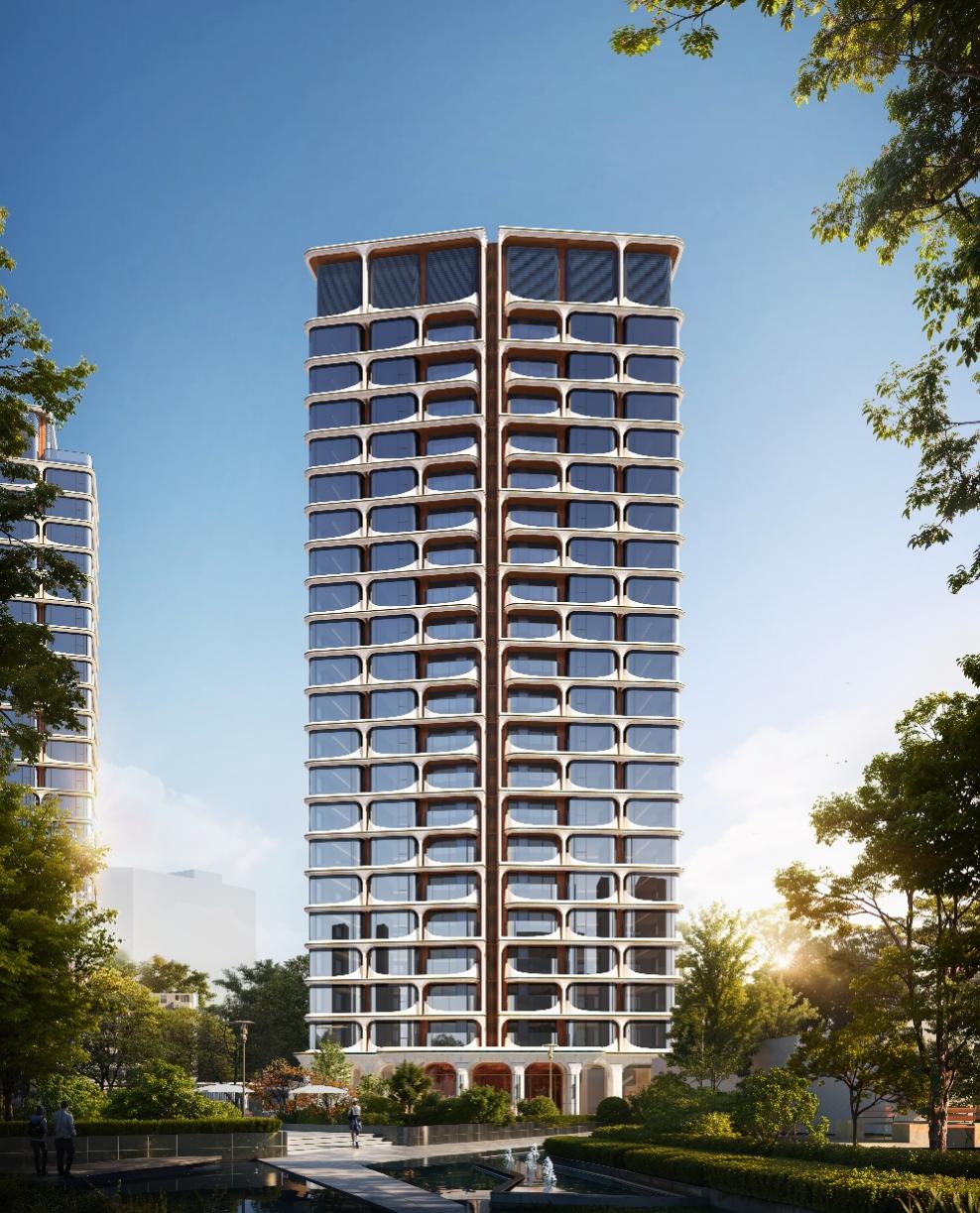 嘉佰道·上海以“高山流水”为设计灵感,为打造徐汇世界级地标,建筑立面的线条比例、材质肌理与上海衡复历史文化风貌区建筑神韵相呼应,采用双曲面铝板与暖色陶板,结合双曲面超白玻幕墙,让海派文化优雅底蕴以更国际化的方式呈现。